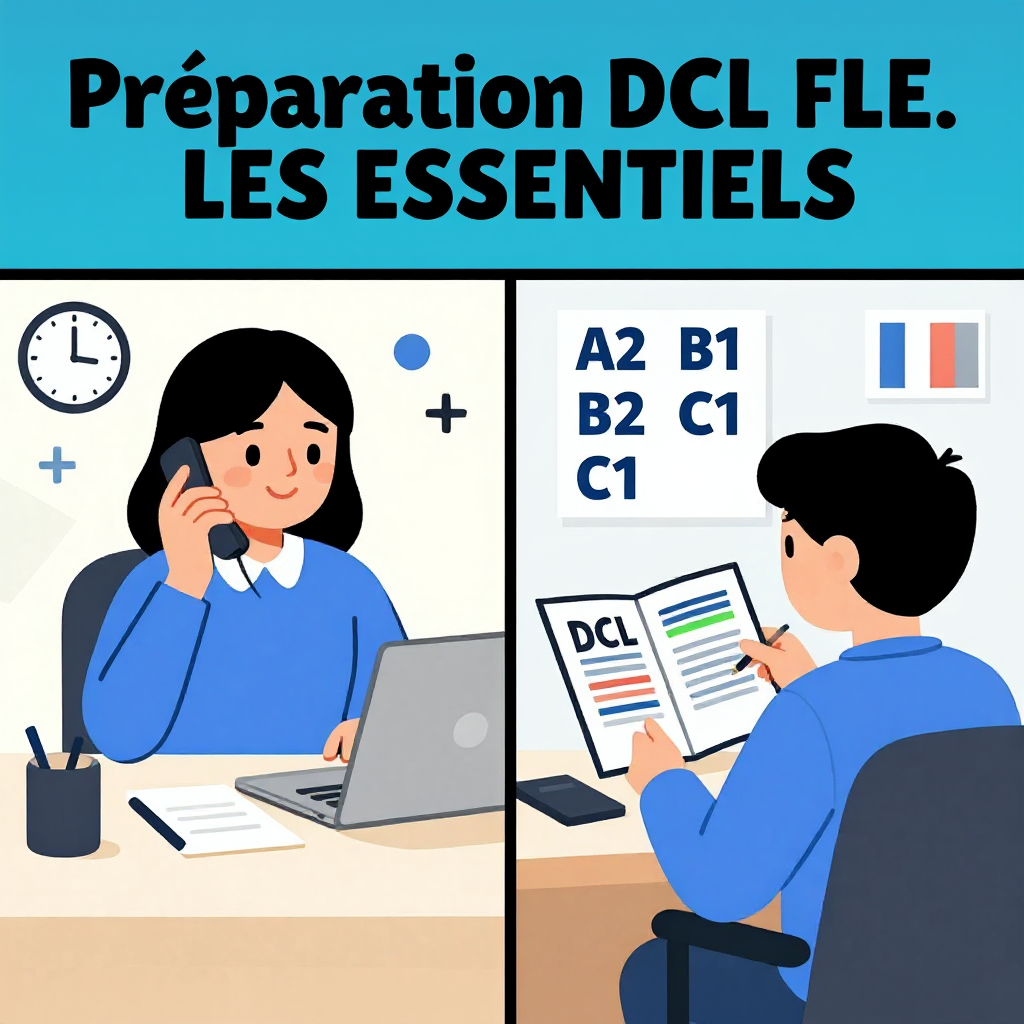 Il vous permettra de vous familiariser avec les modalités de déroulement du DCL FLE, de connaître des astuces pour obtenir un bon résultat, de vous entrainer via des dossiers DCL FLE en mode "guidé" mais aussi en passant un DCL blanc.